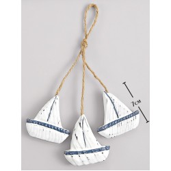 διακοσμητικό με σπάγκο από λινάτσα και 3 ξύλινες βαρκούλες, σε χρώματα