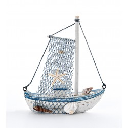 βαρκούλα σε βάση, στολισμένη με δίχτυ και θαλασσινά διακοσμητικά. Κομψό δώρο,