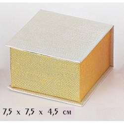 Χάρτινο τετράγωνο δίχρωμο κουτί με επένδυση σατέν στο εσωτερικό, σε χρώμα εκρού-κίτρινο. Κομψή και πολυτελής πρόταση για συσκευασία, κατάλληλο για δημιουργικές χειροποίητες κατασκευές, ιδανική μπομπονιέρα για ιδιαίτερες και εντυπωσιακές βαπτίσεις.Διαστάσεις: 7.5x7.5x4.5 cmΗ τιμή αφορά το ένα τεμάχιο..