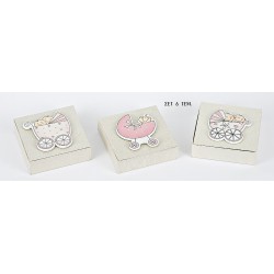 Τετράγωνο κουτί με παιδικά διακοσμητικά σχέδια στο καπάκι και σατέν στο εσωτερικό, σε σετ 6 διαφορετικών σχεδίων. Κομψό και πρακτικό δώρο για το σπίτι, ιδανική μπομπονιέρα για ιδιαίτερες και εντυπωσιακες βαπτίσεις. Διαστάσεις: 10x10x3 cm Μπορούμε να φτιάξουμε ό,τι θέμα θέλετε. Η τιμή α..