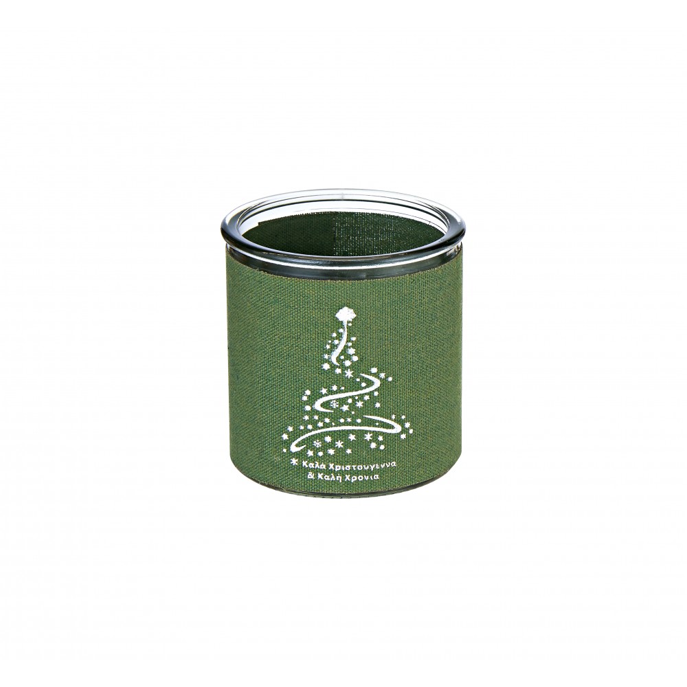 0152.19149 ΓΥΑΛΙΝΟ ΣΤΡΟΓΓΥΛΟ ΚΗΡΟΠΗΓΙΟ ΝΤΥΜΕΝΟ ΜΕ ΛΙΝΟ ΥΦΑΣΜΑ & ΧΡΙΣΤΟΥΓΕΝΝΙΑΤΙΚΟ ΤΥΠΩΜΑ