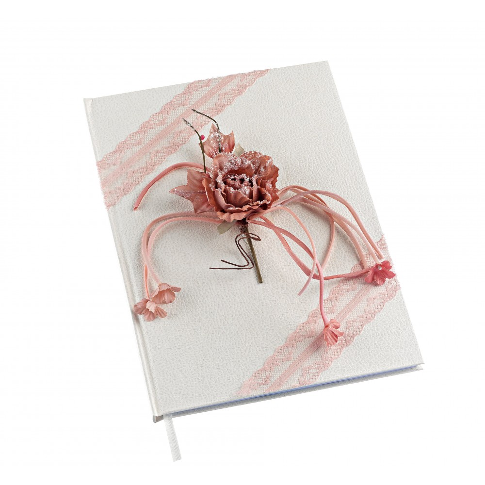 ευχών με χειροποίητη vintage διακόσμηση στο εξώφυλλο και 52 λευκές σελίδες.