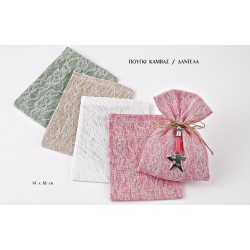 Πουγκί φτιαγμένο από καμβά ντυμένο με δαντέλα, διαθέσιμο σε 4 χρώματα. Κομψή και πρωτότυπη μπομπονιέρα για ιδιαίτερες βαπτίσεις και εντυπωσιακούς γάμους.Διαστάσεις: 14x18 cm.Η τιμή αφορά το ένα τεμάχιο και δεν συμπεριλαμβάνεται ο ΦΠΑ. Mετά την καταχώρηση της παραγγελίας σας, αν χρειαστεί, θα επικοιν..