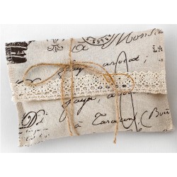 Υφασμάτινος φάκελος, φτιαγμένος από εκρού εμπριμέ ύφασμα, στολισμένος με δαντέλα. Κομψή και πρωτότυπη μπομπονιέρα για ιδιαίτερες βαπτίσεις και εντυπωσιακούς γάμους.Διαστάσεις: 17x12 cm.Η τιμή αφορά το ένα τεμάχιο και δεν συμπεριλαμβάνεται ο ΦΠΑ. Mετά την καταχώρηση της παραγγελίας σας, αν χρειαστεί,..